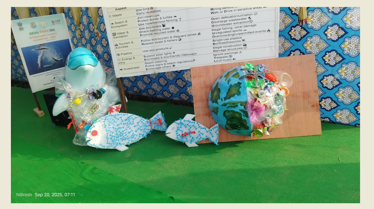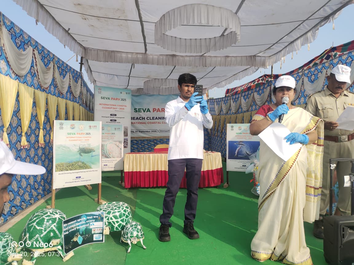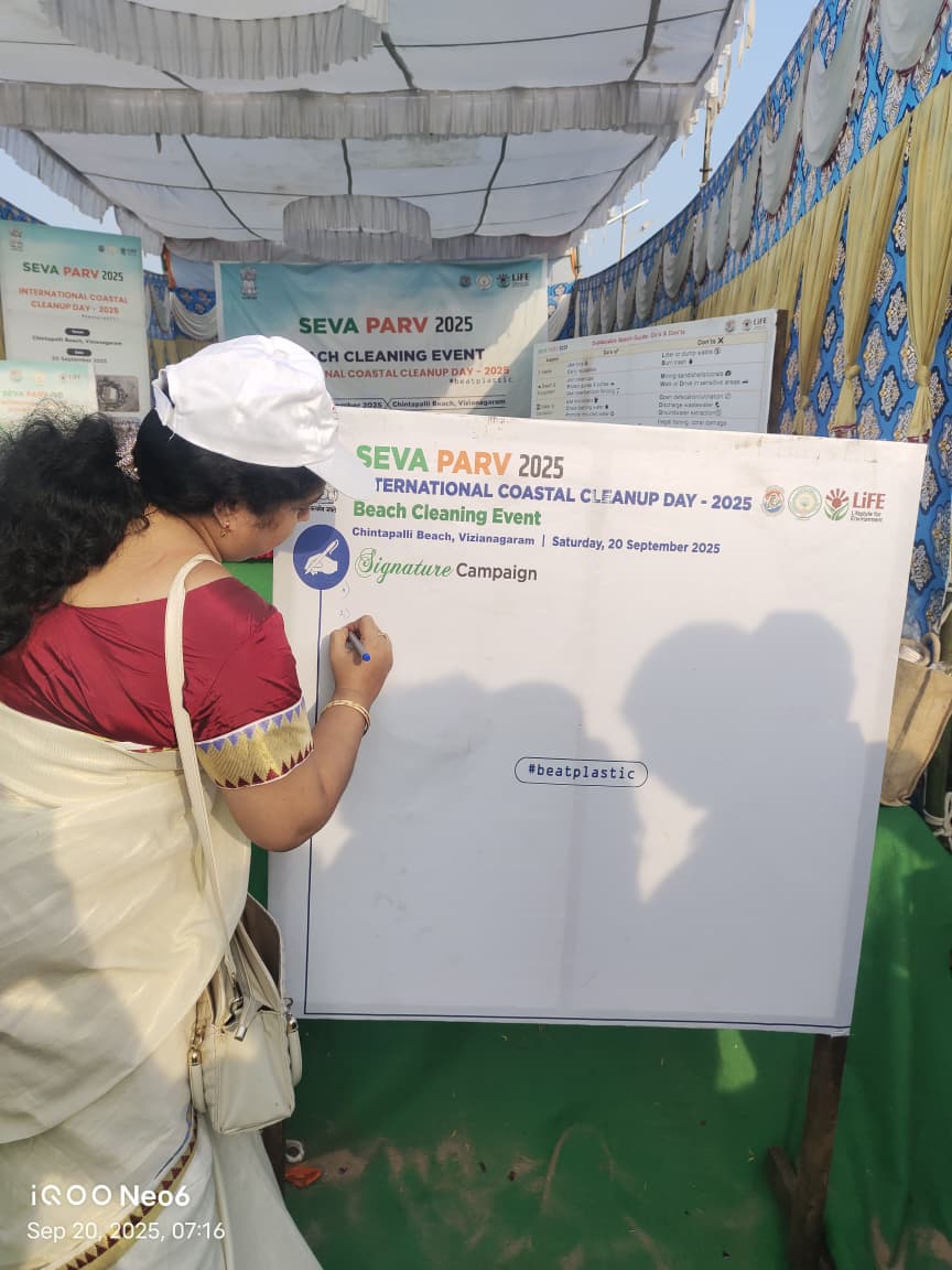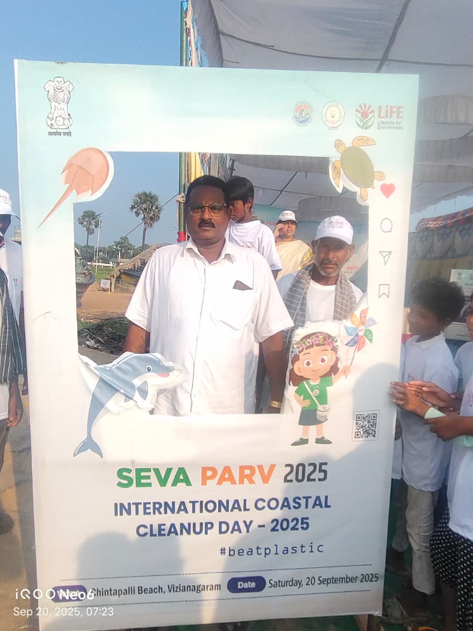 The Union Ministry of Environment, Forest and Climate Change (MoEFCC), in collaboration with the Government of Andhra Pradesh, organized a large-scale Beach Cleaning Drive at Chintapalli Beach, Vizianagaram District Beach on 20th September 2025. The initiative was part of the “Seva Parv” campaign, commemorating International Coastal Clean-up Day (ICCD) 2025.