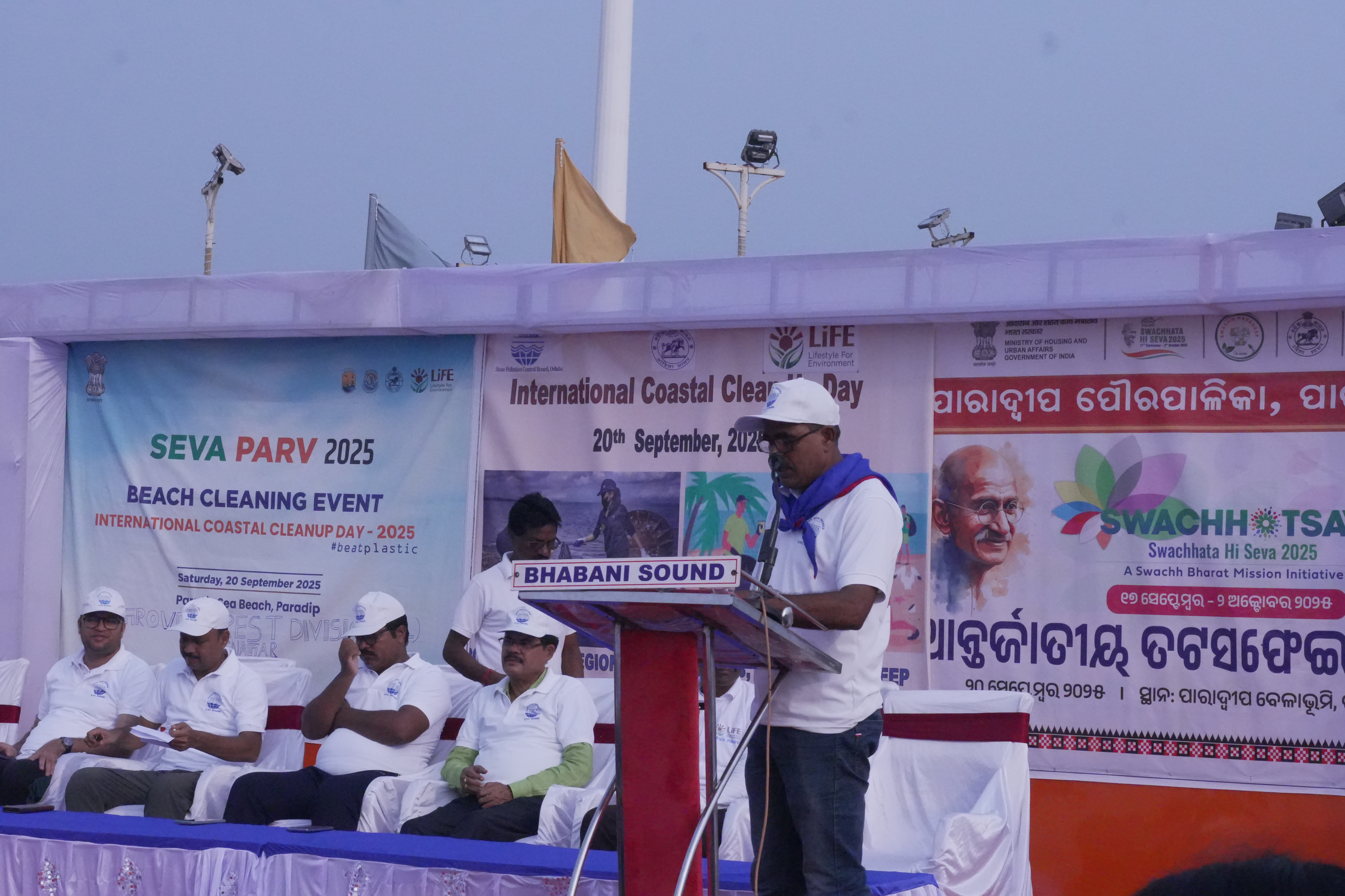 The Union Ministry of Environment, Forest and Climate Change (MoEFCC), in collaboration with the Government of Odisha, organized a large-scale Beach Cleaning Drive at Paradeep, Jagatsingpur Beach on 20th September 2025. The initiative was part of the “Seva Parv” campaign, commemorating International Coastal Clean-up Day (ICCD) 2025.