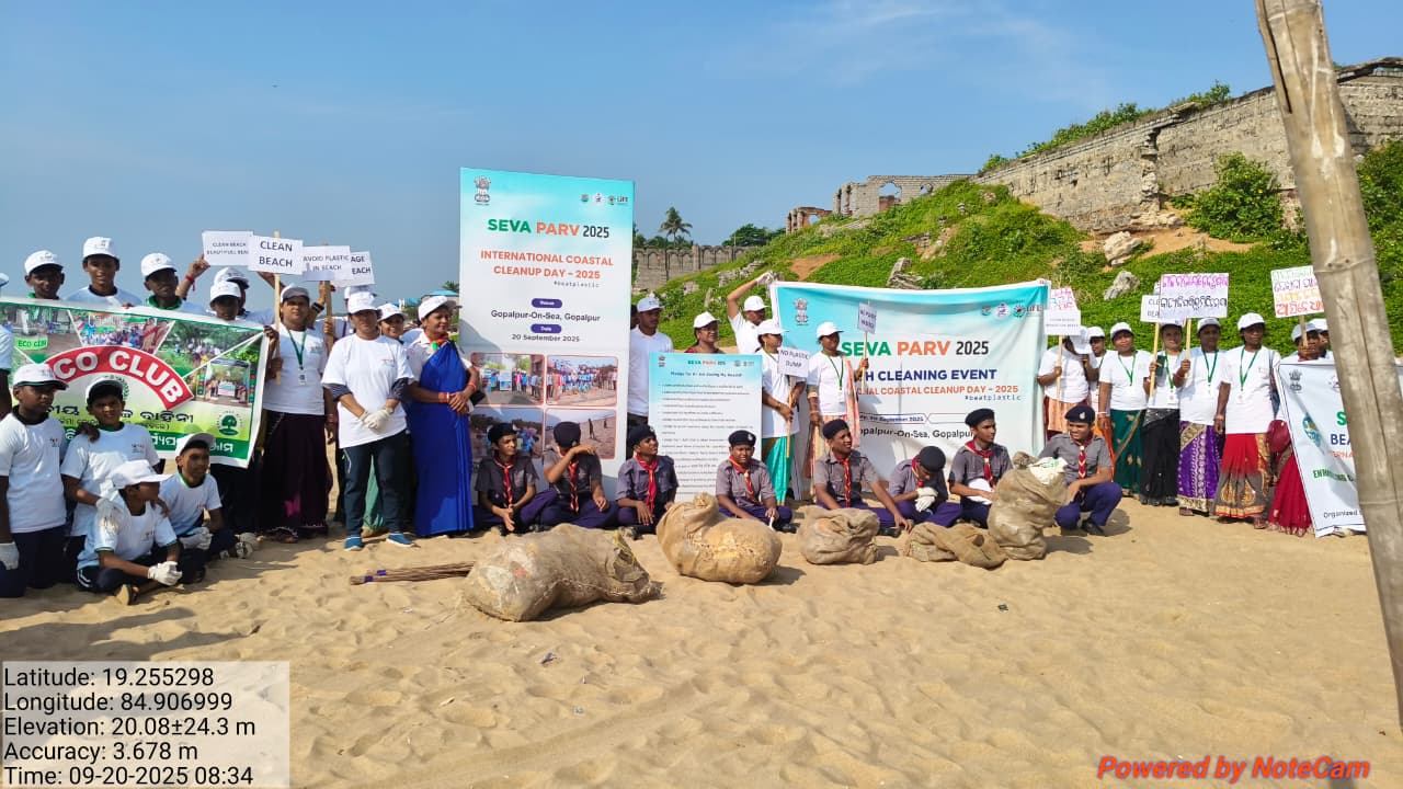 The Union Ministry of Environment, Forest and Climate Change (MoEFCC), in collaboration with the Government of Odisha, organized a large-scale Beach Cleaning Drive at Gopalpur beach, Ganjam Beach on 20th September 2025. The initiative was part of the “Seva Parv” campaign, commemorating International Coastal Clean-up Day (ICCD) 2025.
