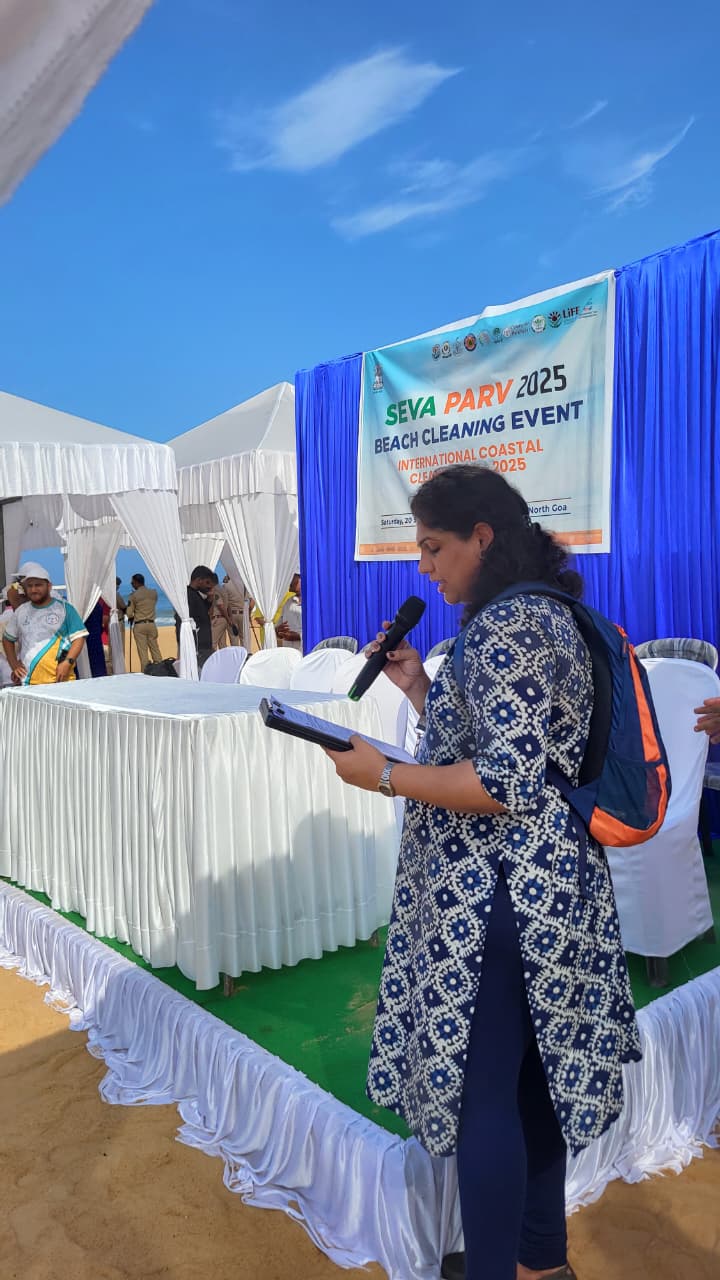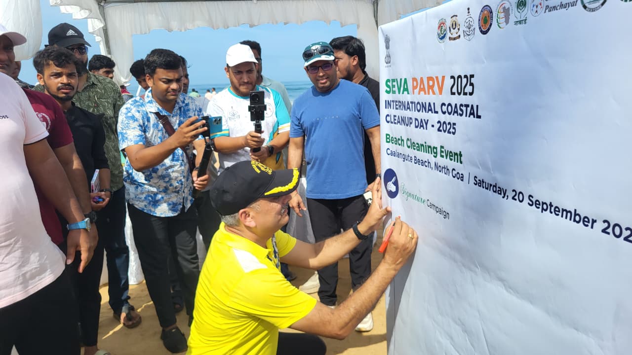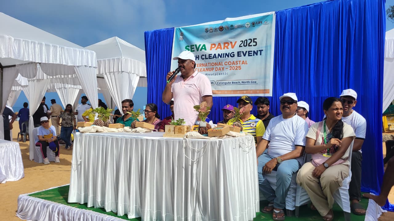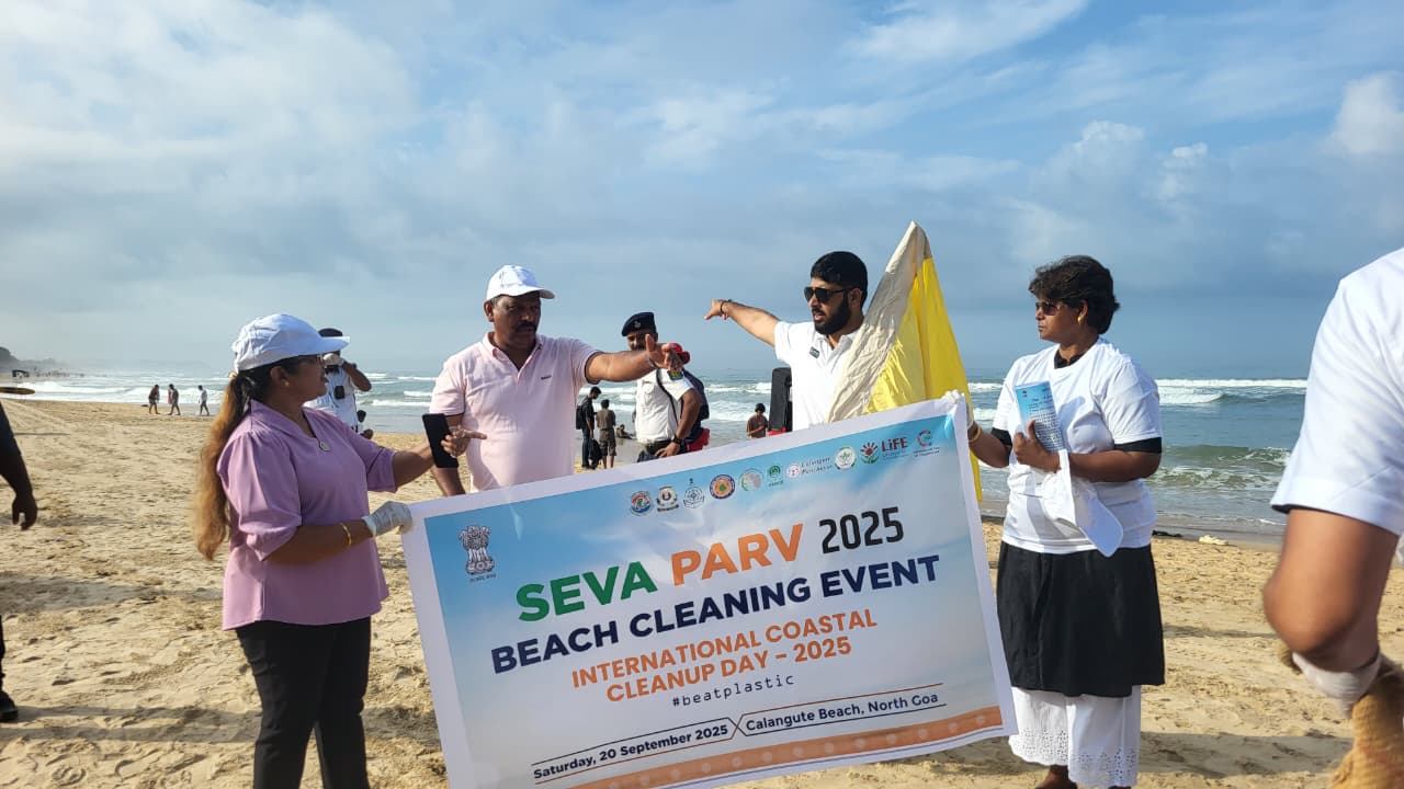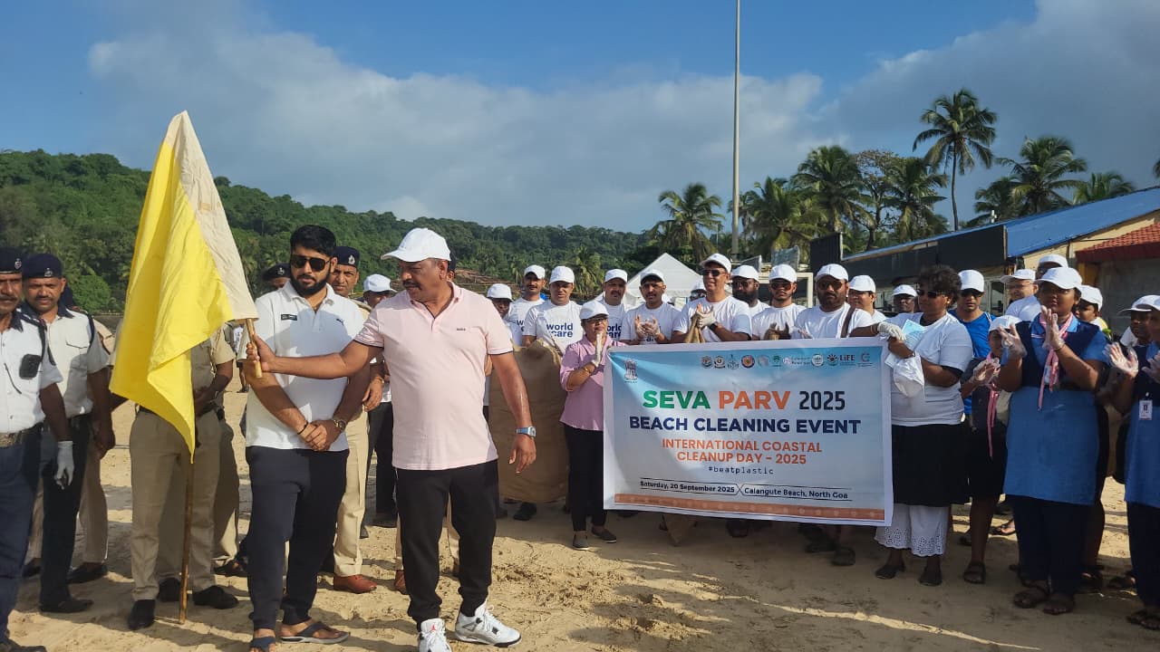 The Union Ministry of Environment, Forest and Climate Change (MoEFCC), in collaboration with the Government of Goa, organized a large-scale Beach Cleaning Drive at Calangute, North Goa Beach on 20th September 2025. The initiative was part of the “Seva Parv” campaign, commemorating International Coastal Clean-up Day (ICCD) 2025.