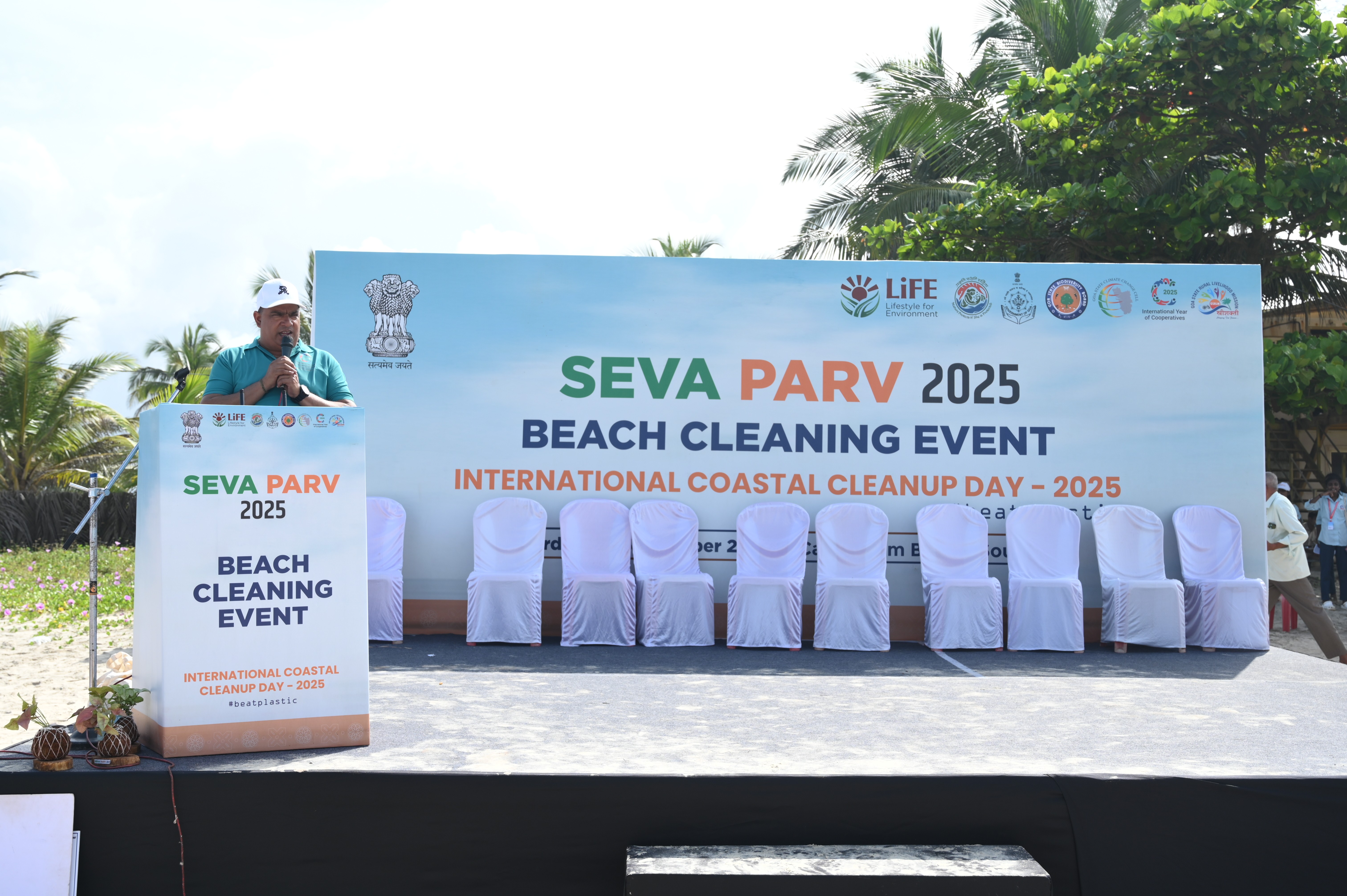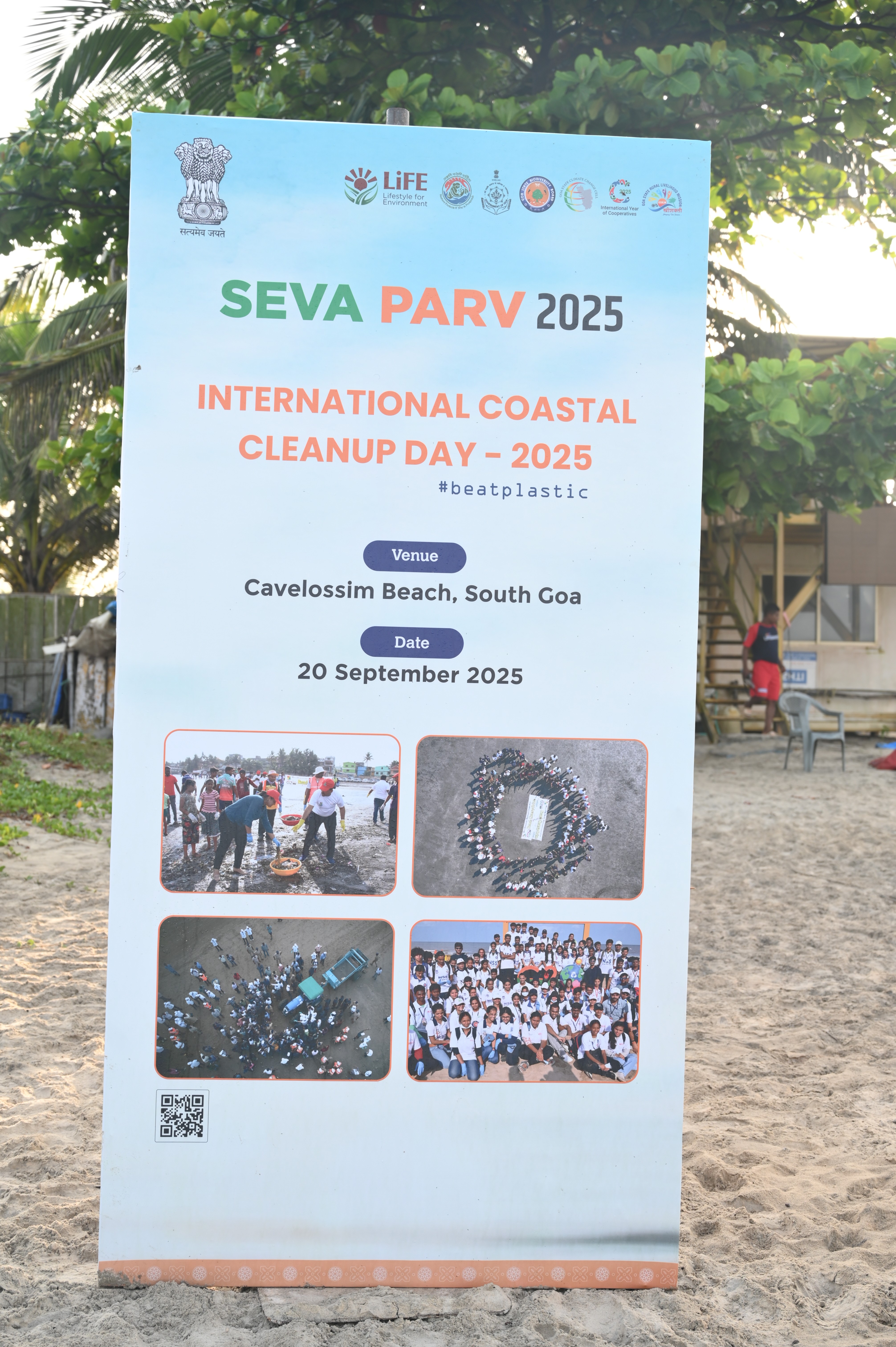 The Union Ministry of Environment, Forest and Climate Change (MoEFCC), in collaboration with the Government of Goa, organized a large-scale Beach Cleaning Drive at Cavelossim, South Goa Beach on 20th September 2025. The initiative was part of the “Seva Parv” campaign, commemorating International Coastal Clean-up Day (ICCD) 2025.