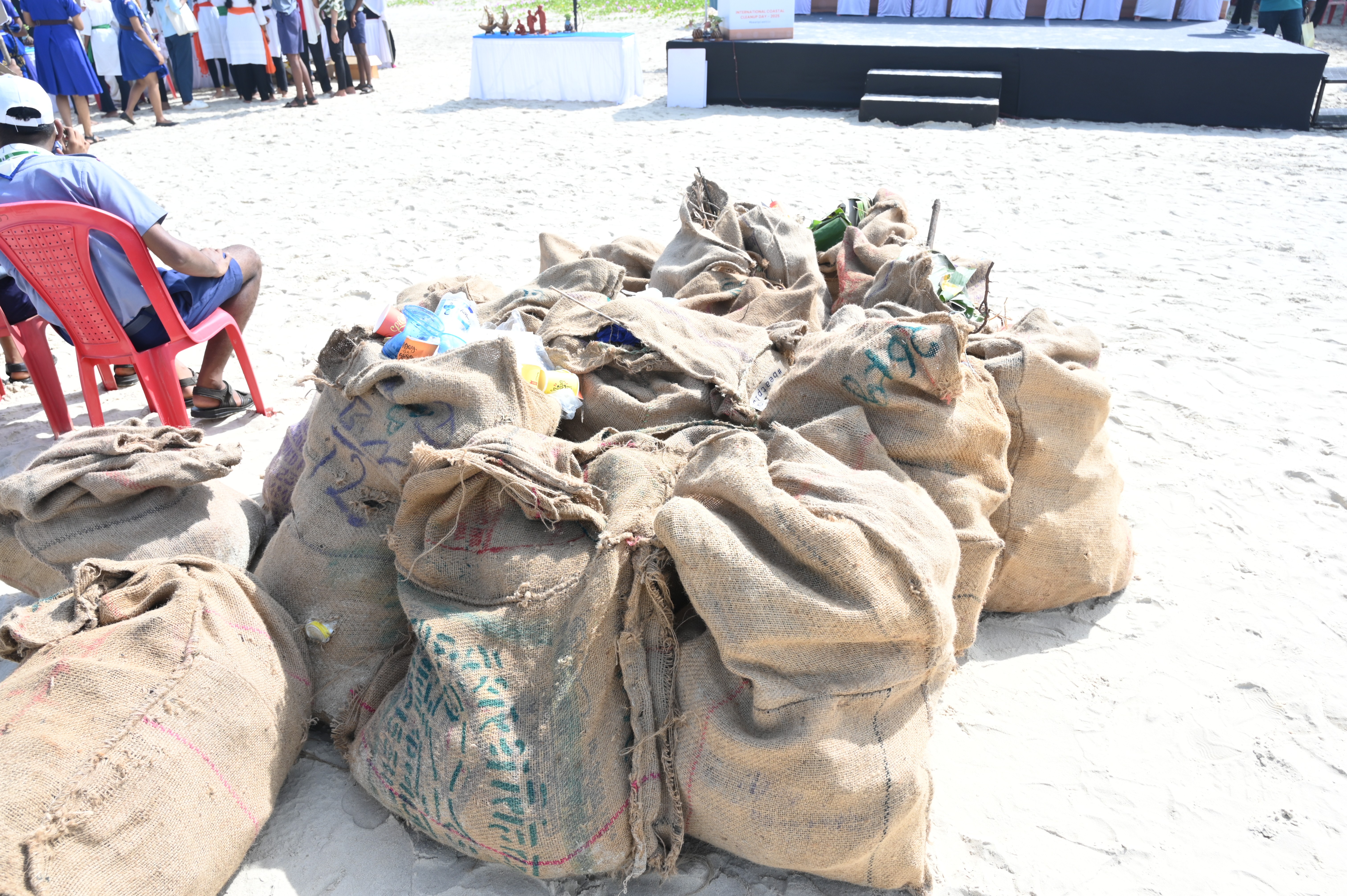 A total of 402 volunteers took part in the clean-up, collecting nearly 384.0 kg of marine litter and waste. The debris primarily consisted of plastic materials and discarded fishing nets, glass and rubber items etc.