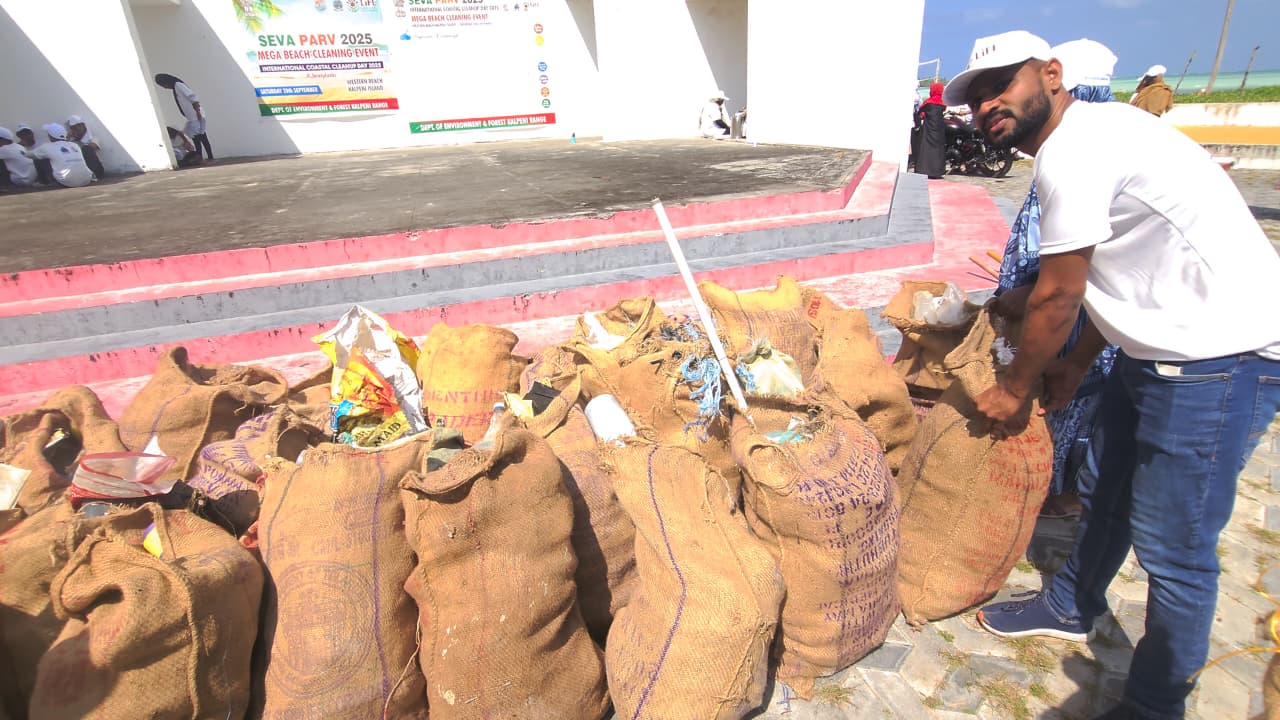 The Union Ministry of Environment, Forest and Climate Change (MoEFCC), in collaboration with the Government of Lakshadweep, organized a large-scale Beach Cleaning Drive at Western Beach, Kalpeni island Beach on 20th September 2025. The initiative was part of the “Seva Parv” campaign, commemorating International Coastal Clean-up Day (ICCD) 2025.