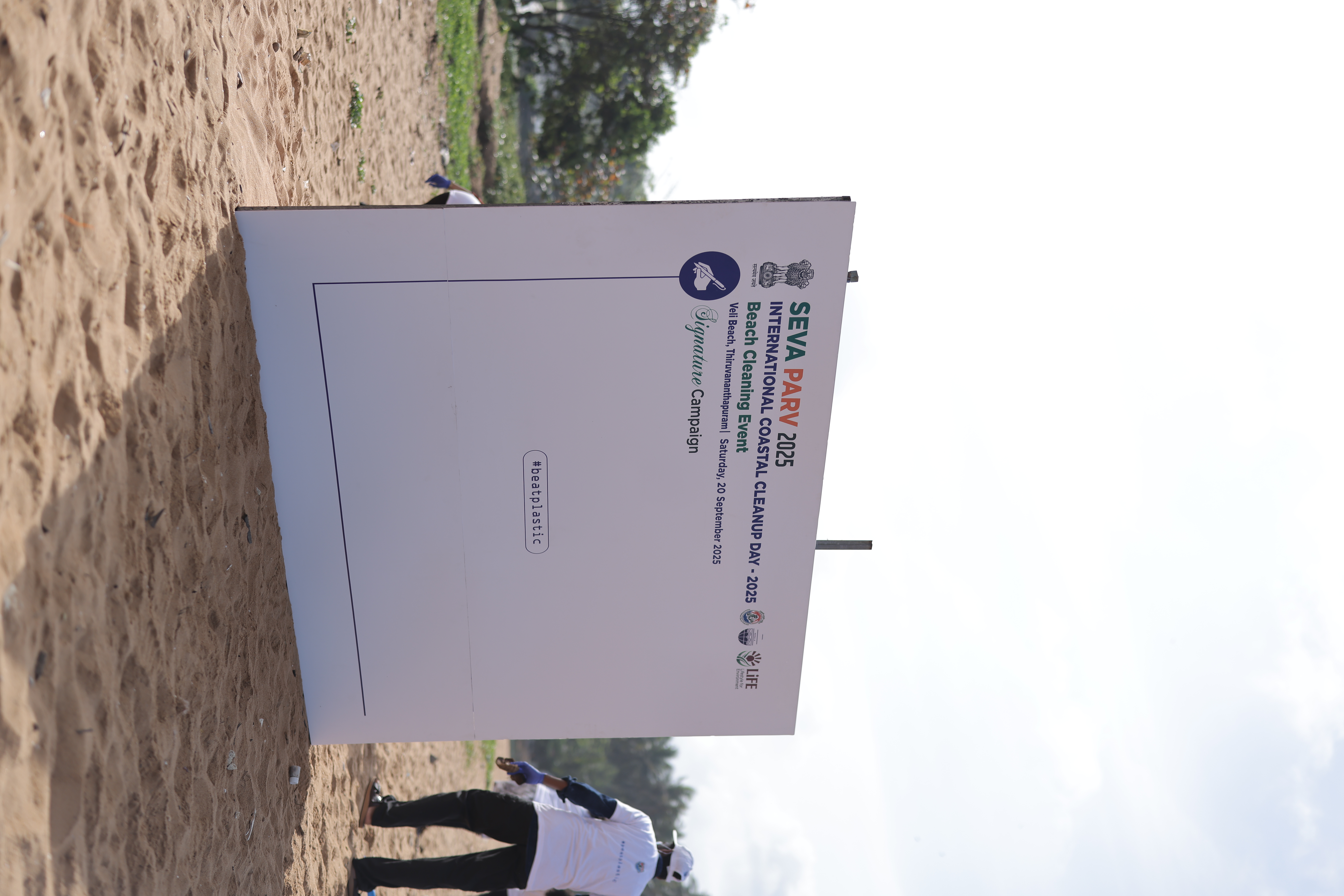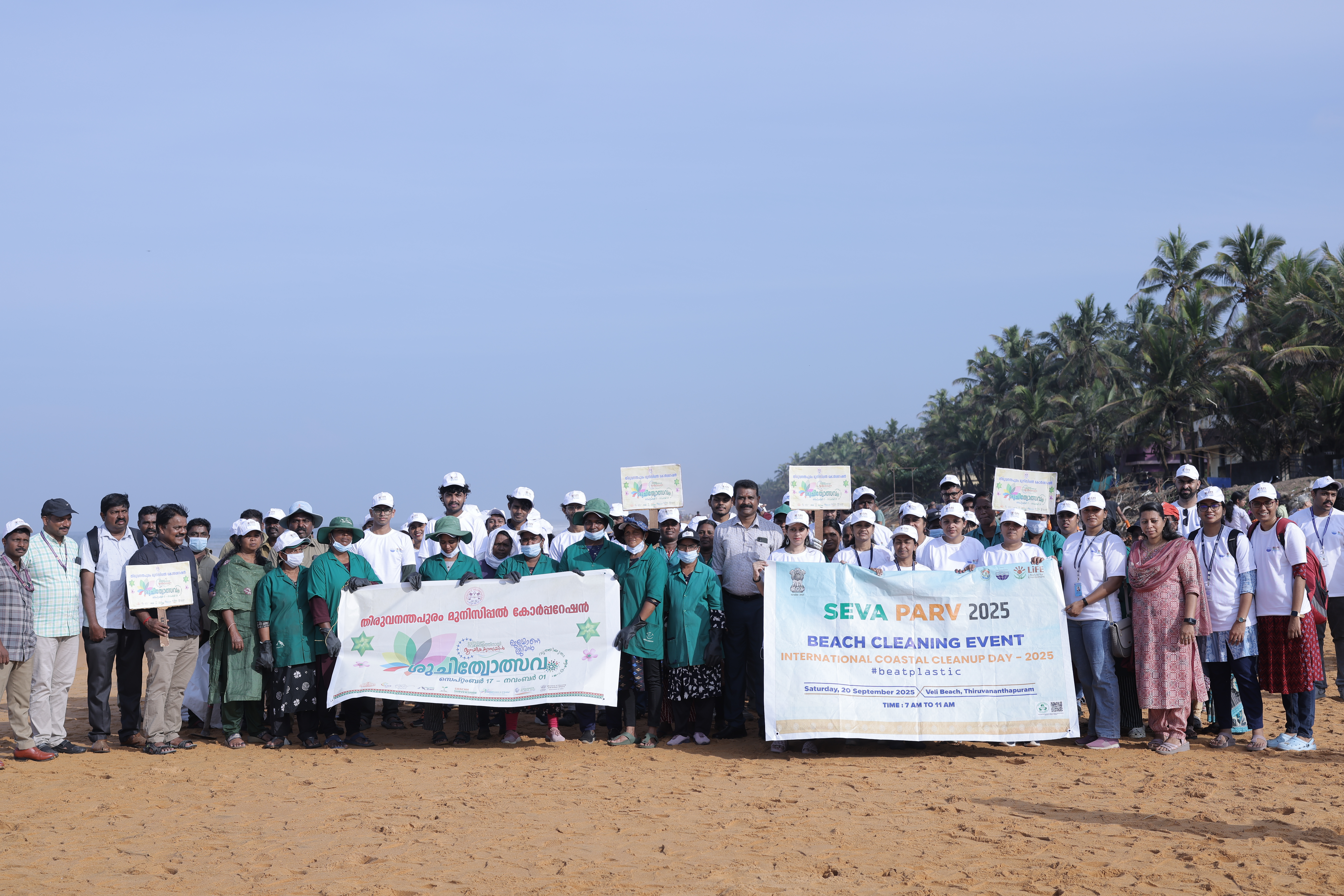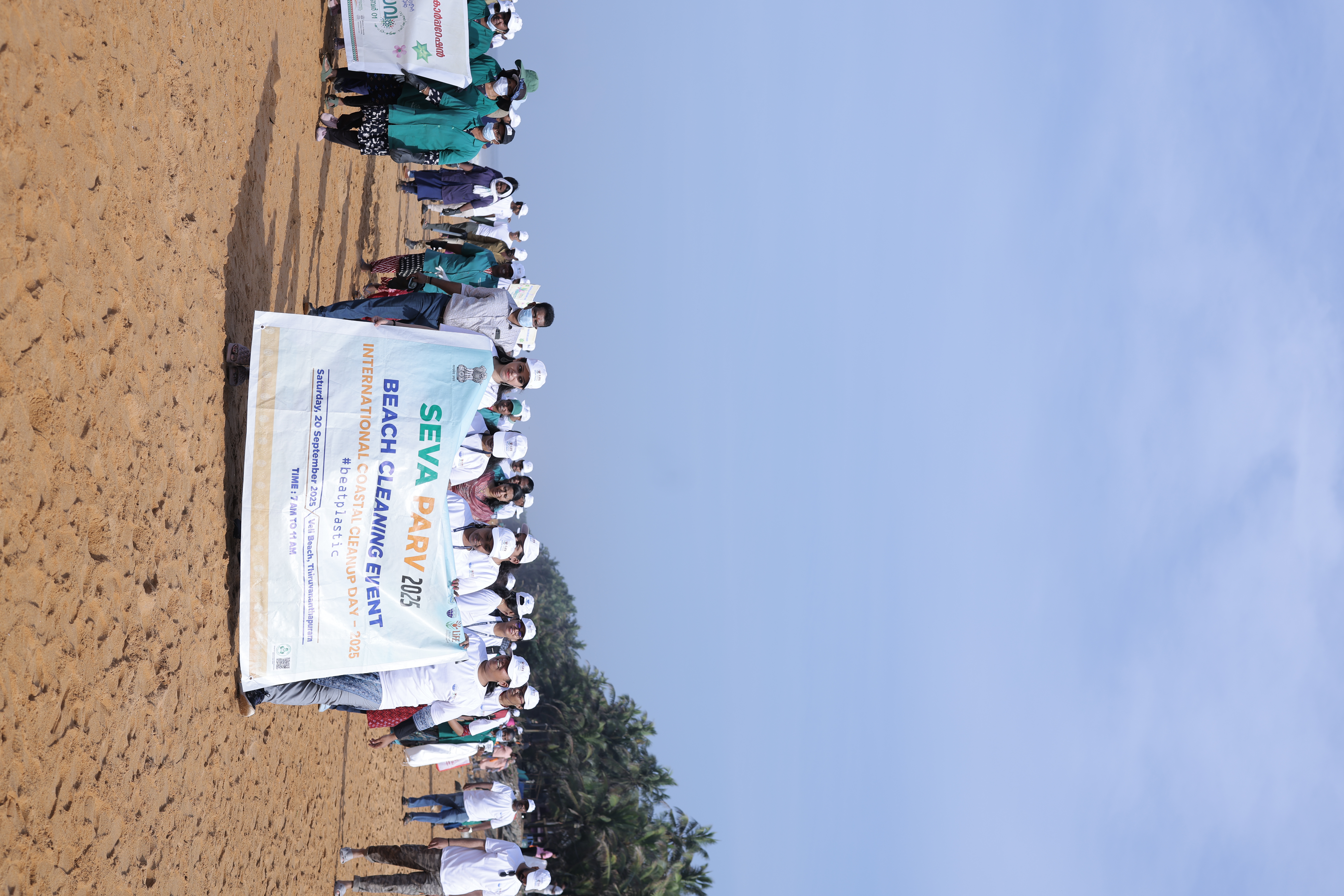 The Union Ministry of Environment, Forest and Climate Change (MoEFCC), in collaboration with the Government of Kerala, organized a large-scale Beach Cleaning Drive at Veli Beach Beach on 20th September 2025. The initiative was part of the “Seva Parv” campaign, commemorating International Coastal Clean-up Day (ICCD) 2025.