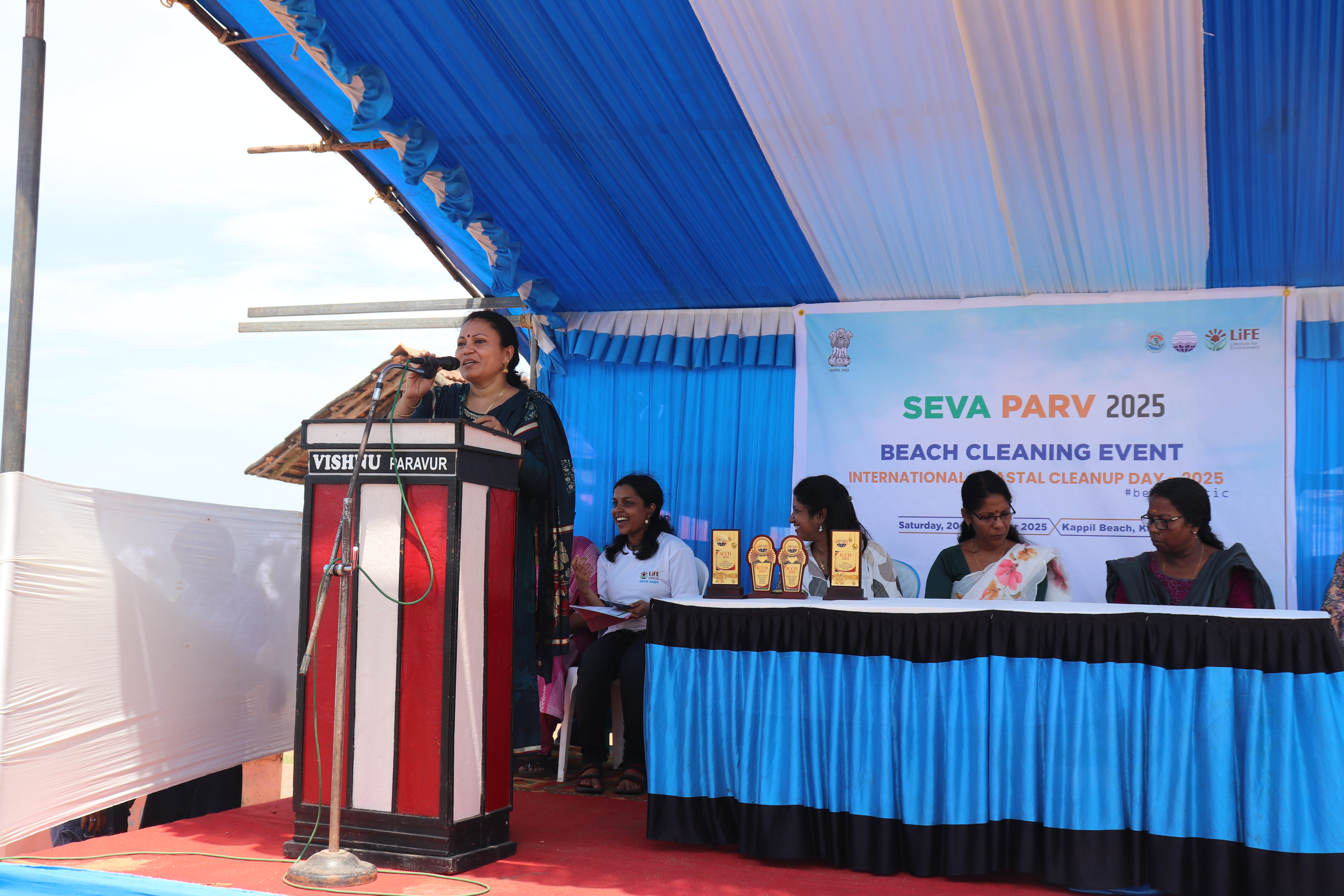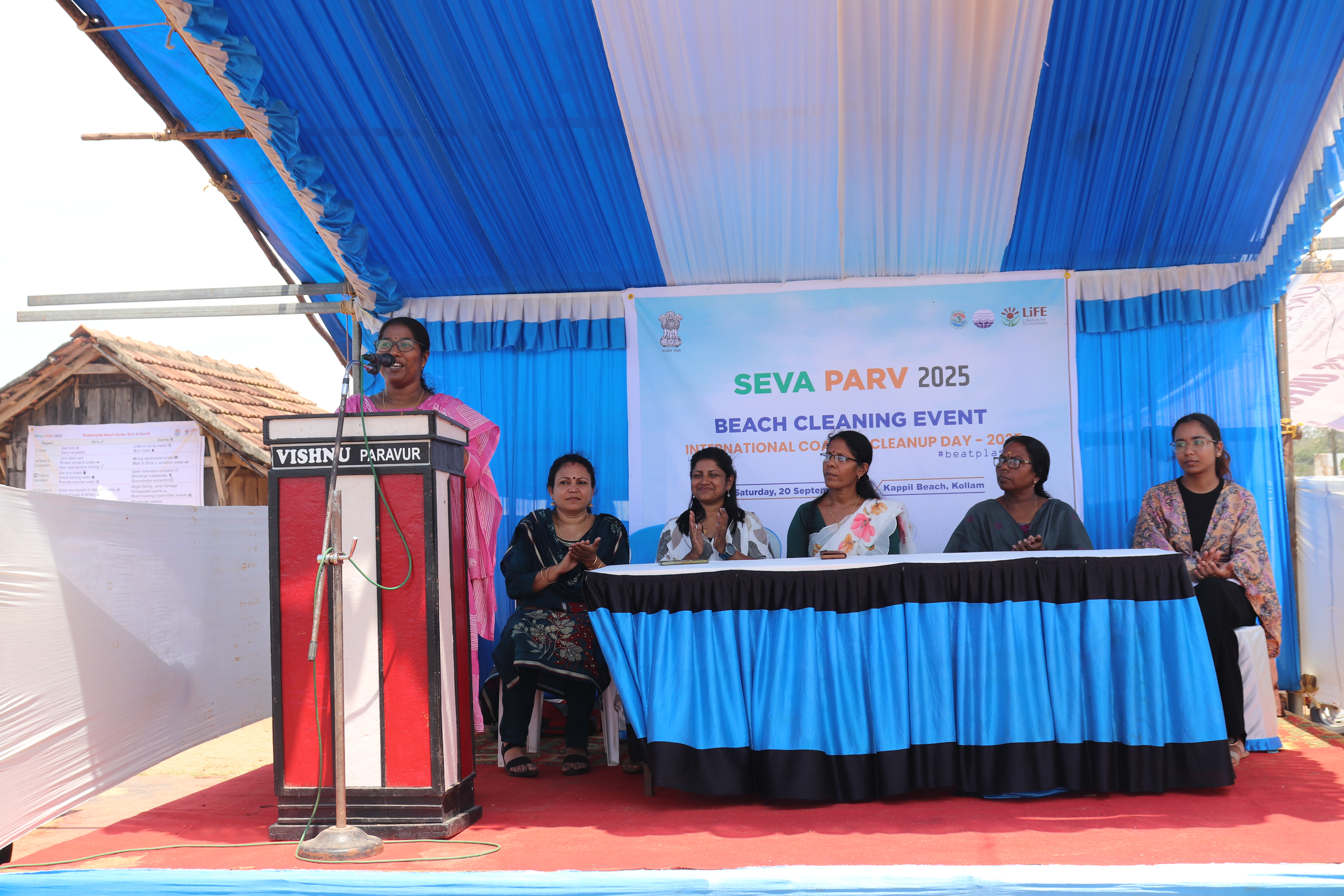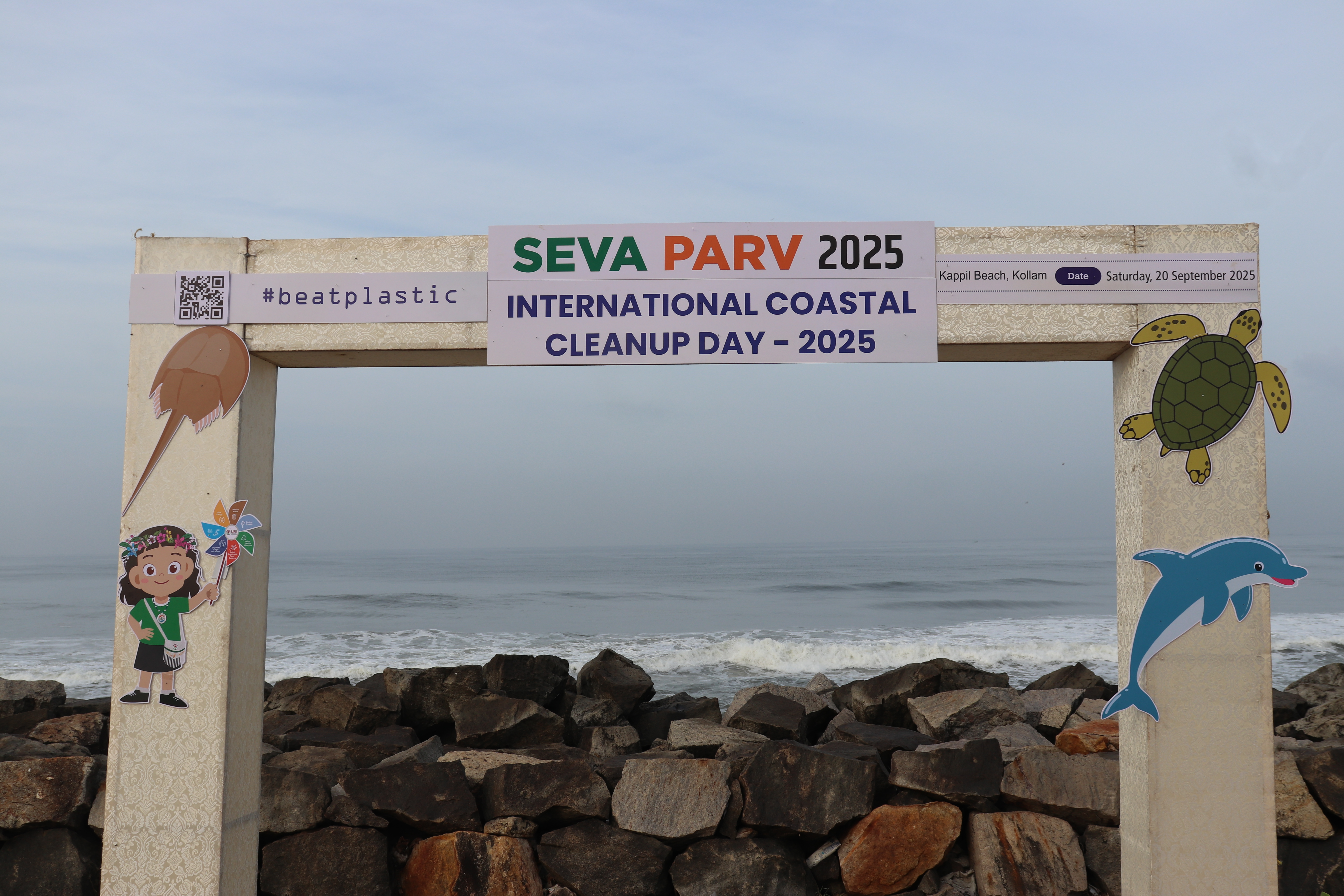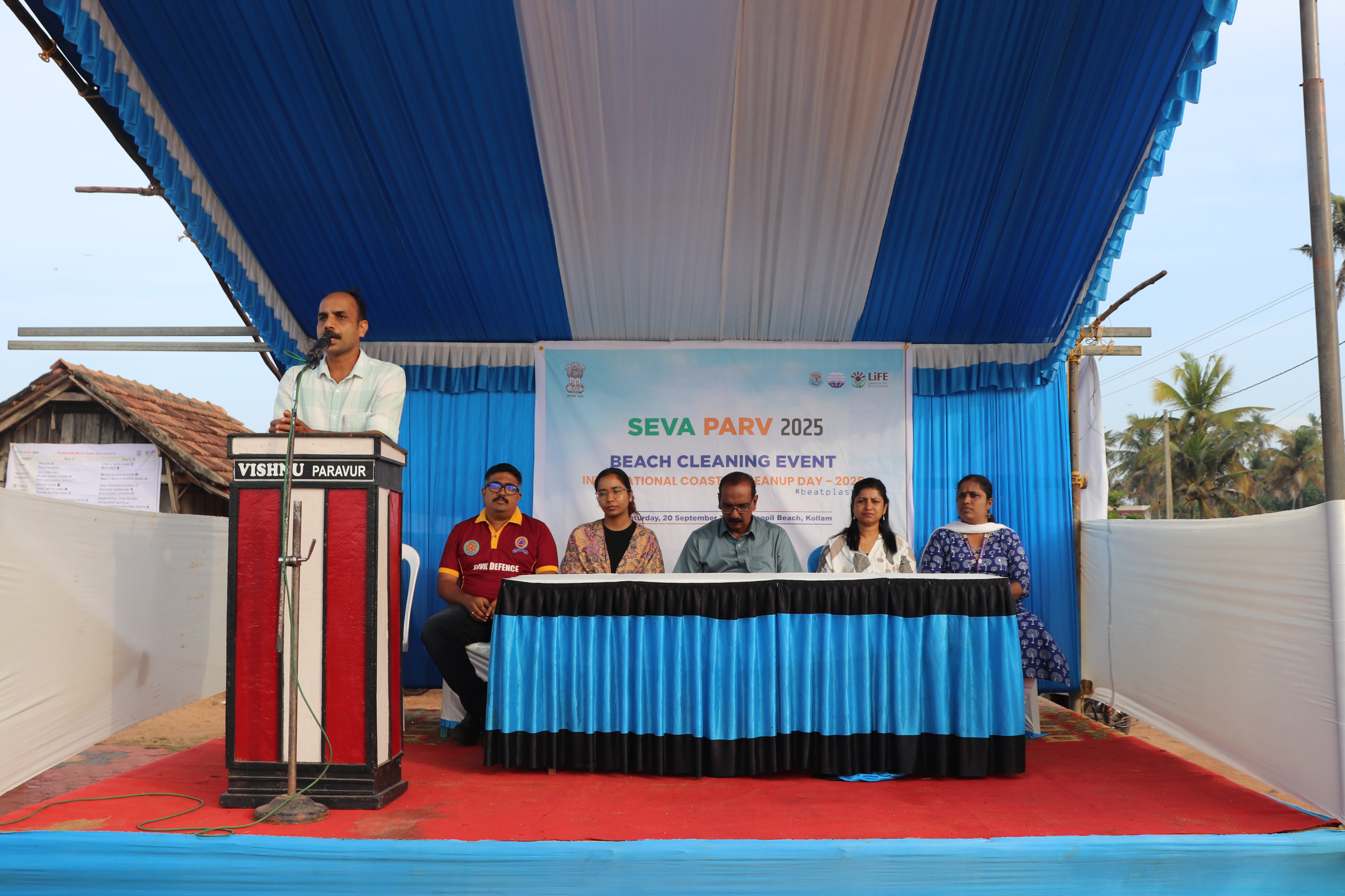 The Union Ministry of Environment, Forest and Climate Change (MoEFCC), in collaboration with the Government of Kerala, organized a large-scale Beach Cleaning Drive at Kappil Beach, Kollam Beach on 20th September 2025. The initiative was part of the “Seva Parv” campaign, commemorating International Coastal Clean-up Day (ICCD) 2025.