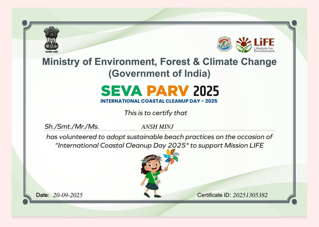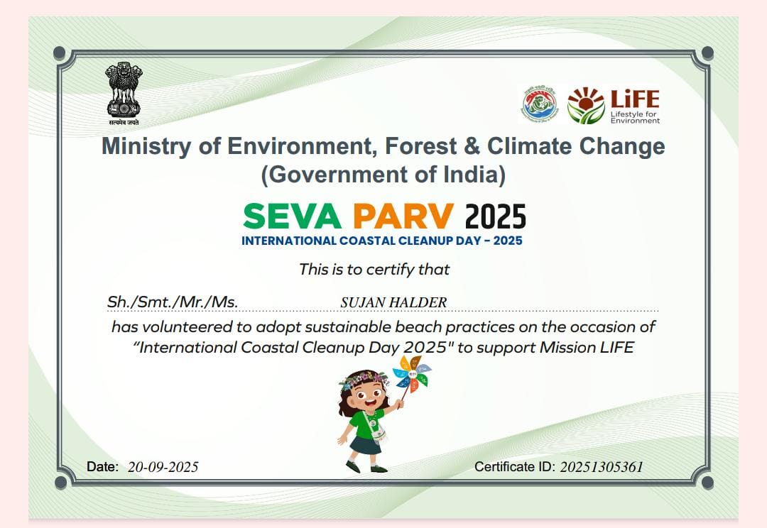 The Union Ministry of Environment, Forest and Climate Change (MoEFCC), in collaboration with the Government of Andaman & Nicobar Islands, organized a large-scale Beach Cleaning Drive at Ramnagar beach, Diglipur Beach on 20th September 2025. The initiative was part of the “Seva Parv” campaign, commemorating International Coastal Clean-up Day (ICCD) 2025.