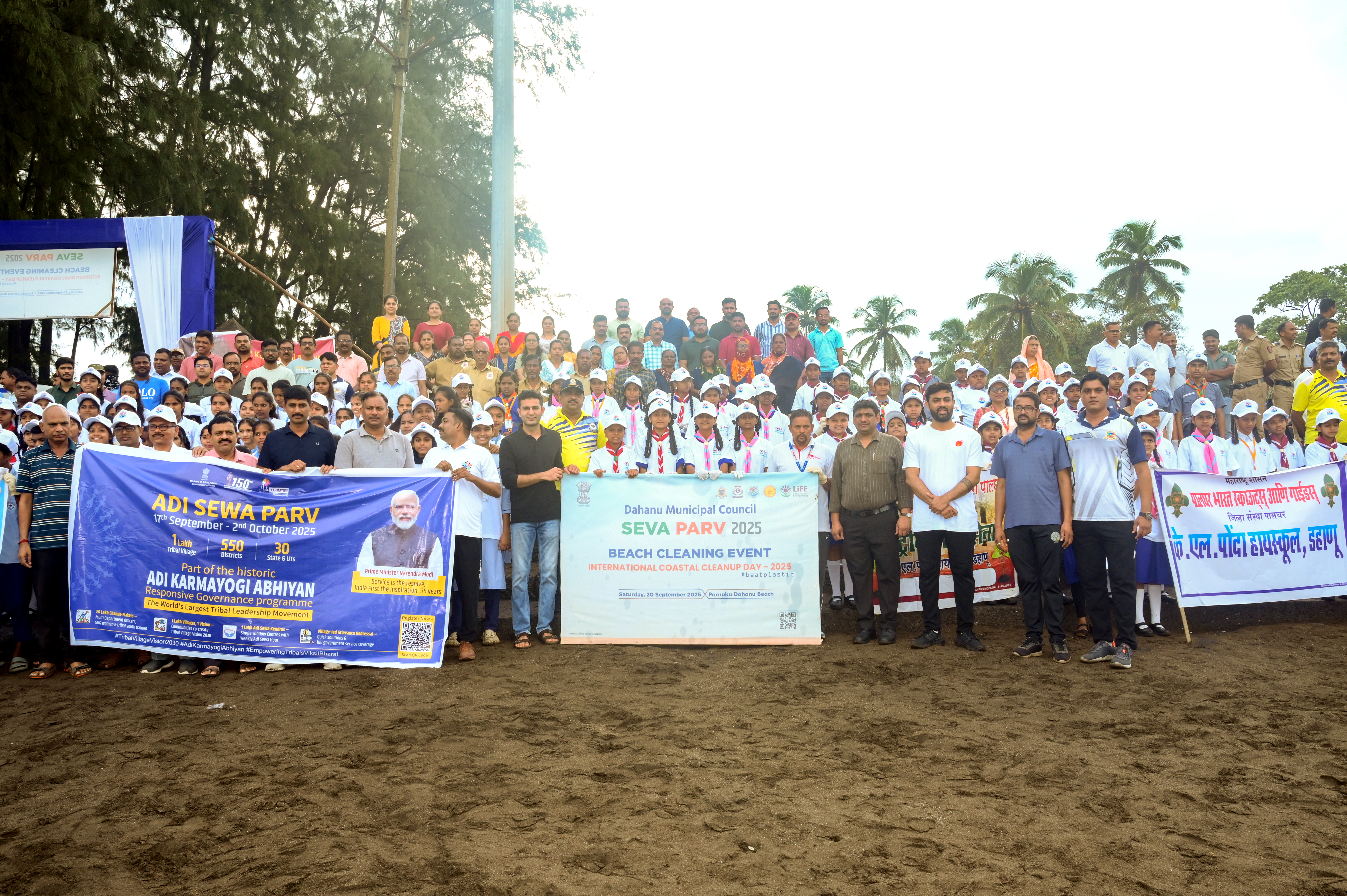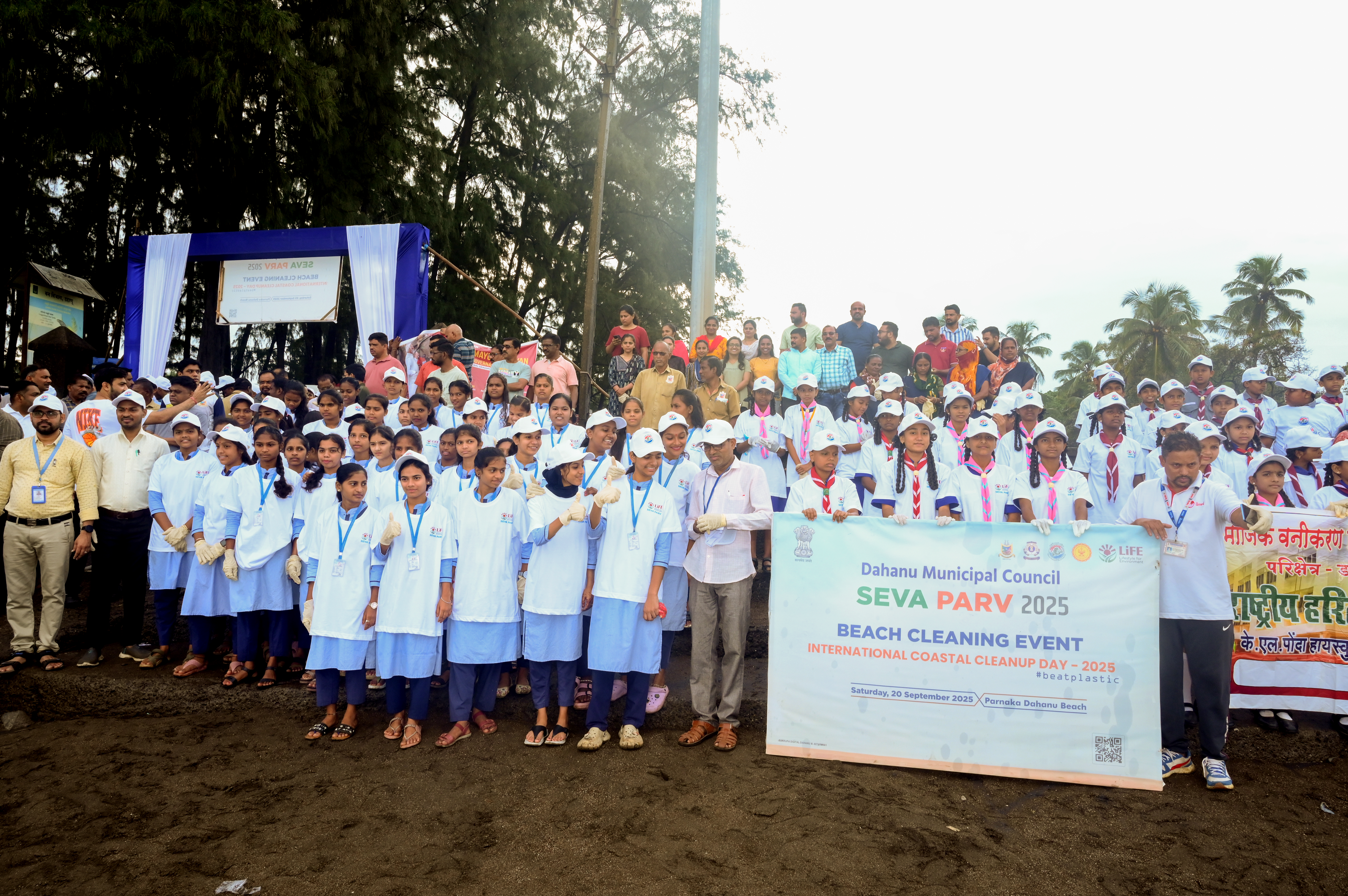 The Union Ministry of Environment, Forest and Climate Change (MoEFCC), in collaboration with the Government of Maharashtra, organized a large-scale Beach Cleaning Drive at Dahanu Beach Beach on 20th September 2025. The initiative was part of the “Seva Parv” campaign, commemorating International Coastal Clean-up Day (ICCD) 2025.