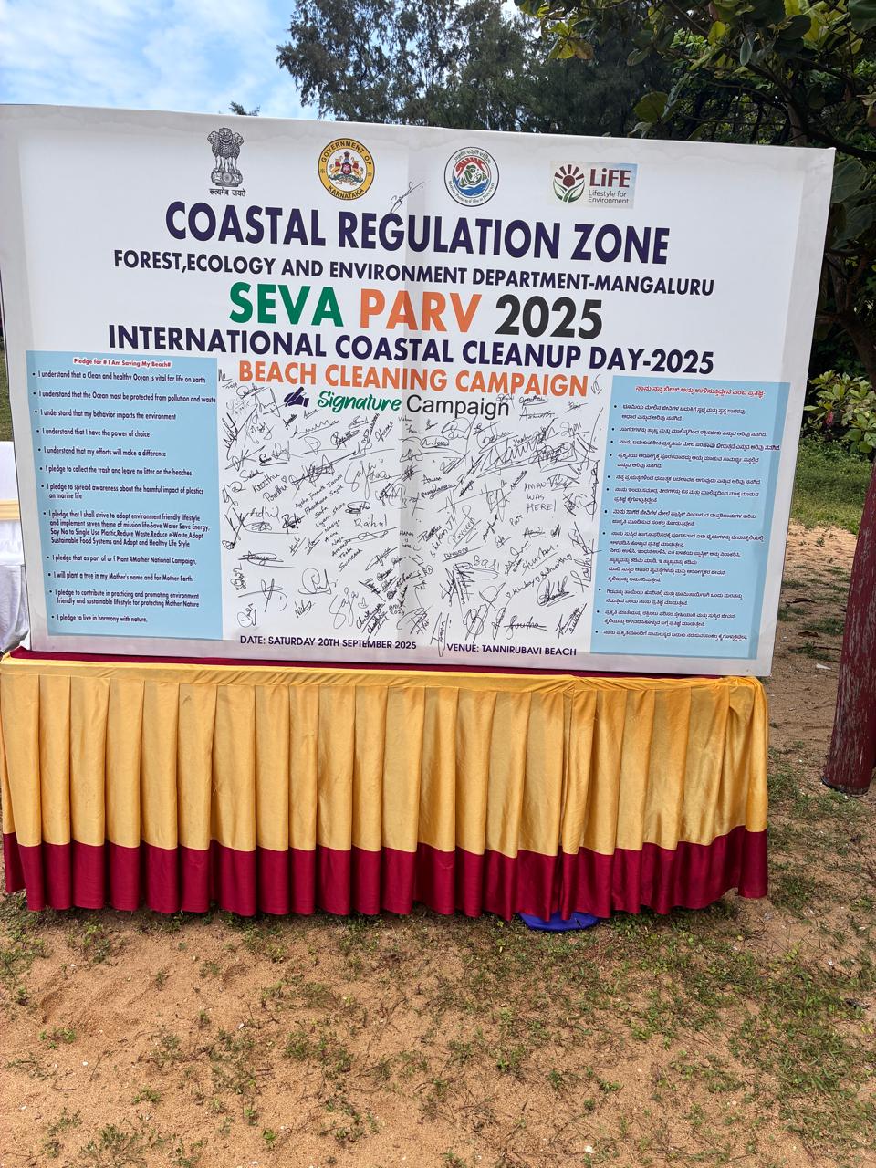 The Union Ministry of Environment, Forest and Climate Change (MoEFCC), in collaboration with the Government of Karnataka, organized a large-scale Beach Cleaning Drive at Tannirubhavi Beach, Mangaluru, dakshina Kannada distt Beach on 20th September 2025. The initiative was part of the “Seva Parv” campaign, commemorating International Coastal Clean-up Day (ICCD) 2025.