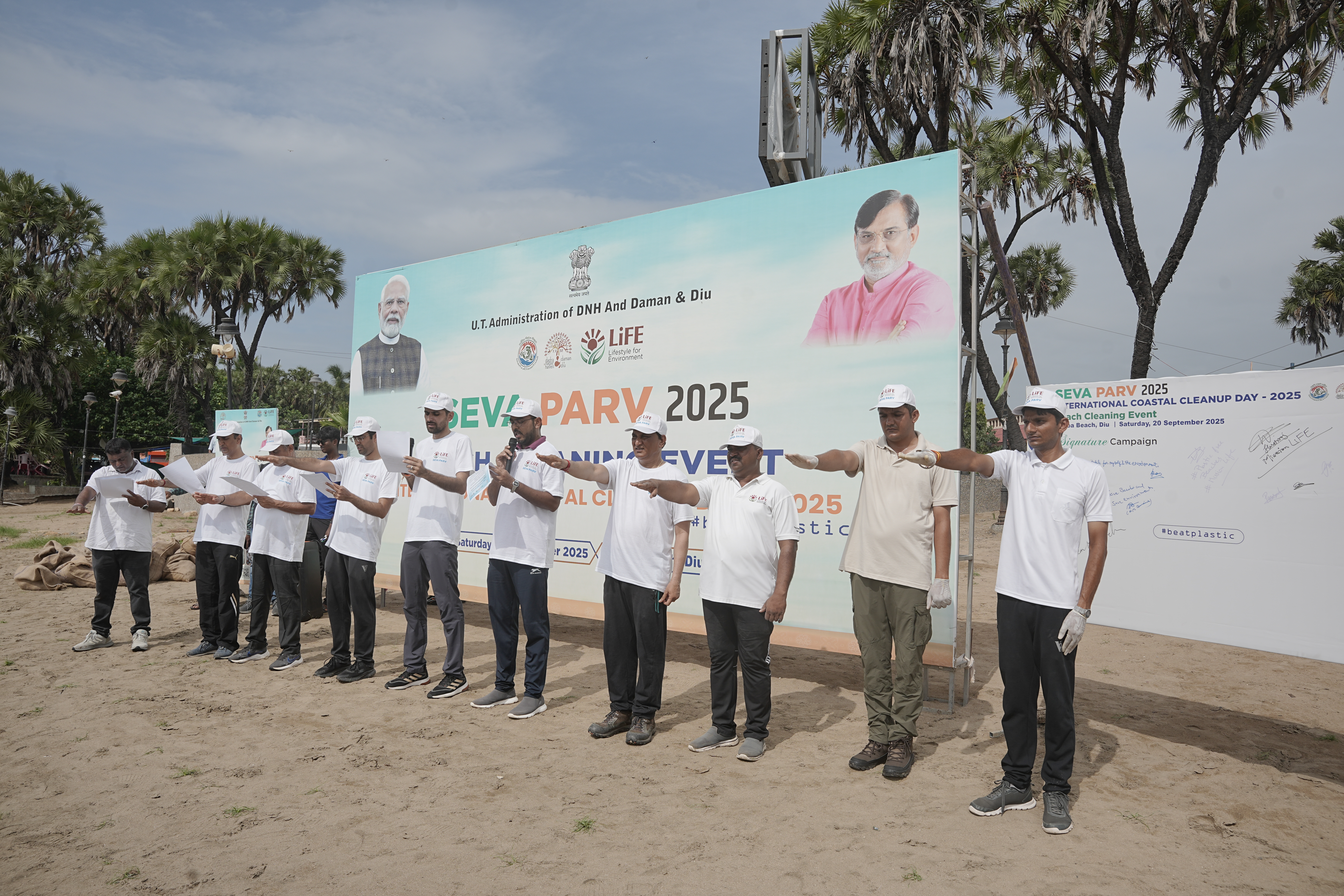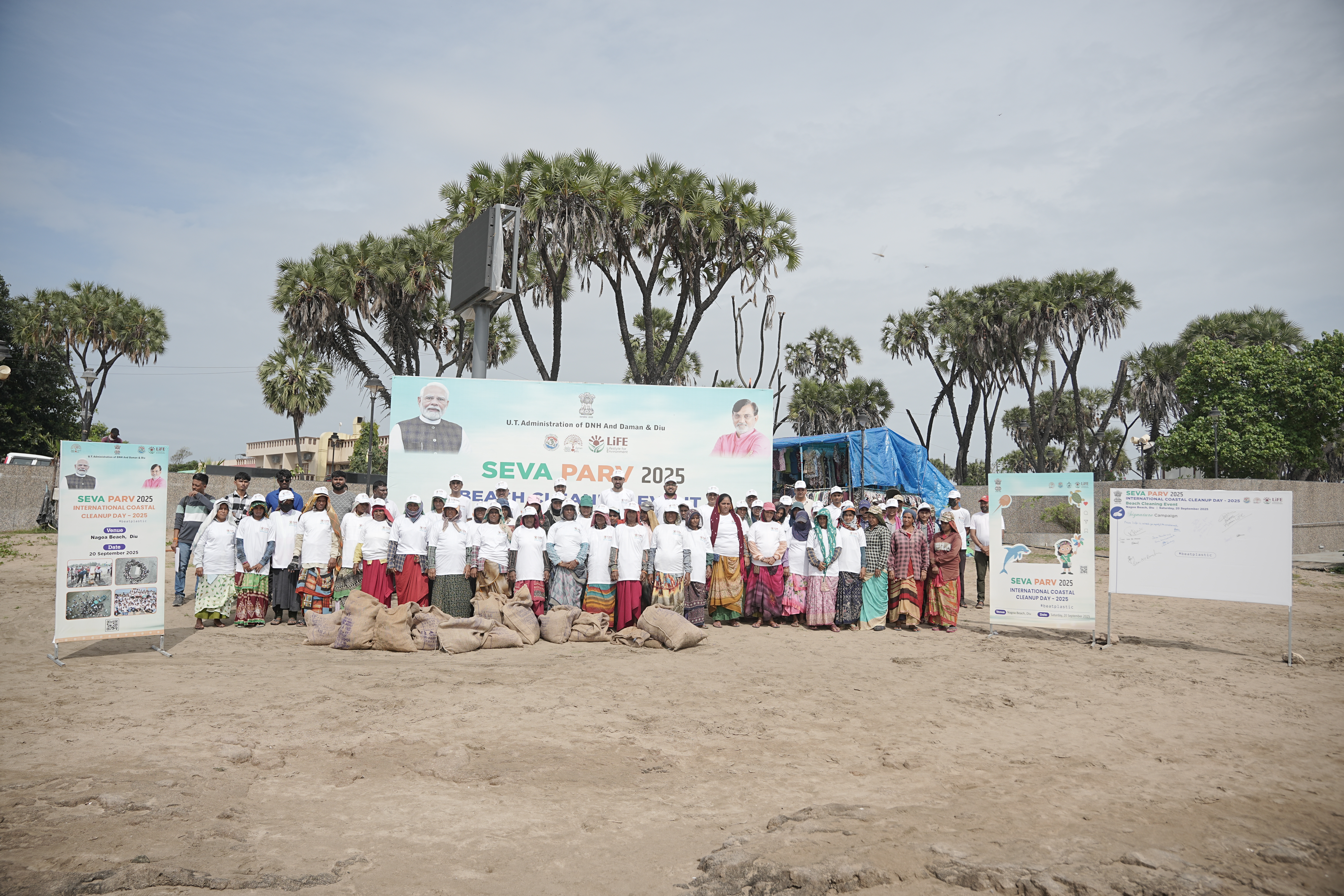 The Union Ministry of Environment, Forest and Climate Change (MoEFCC), in collaboration with the Government of Daman & Diu, organized a large-scale Beach Cleaning Drive at Nagoa Beach Beach on 20th September 2025. The initiative was part of the “Seva Parv” campaign, commemorating International Coastal Clean-up Day (ICCD) 2025.