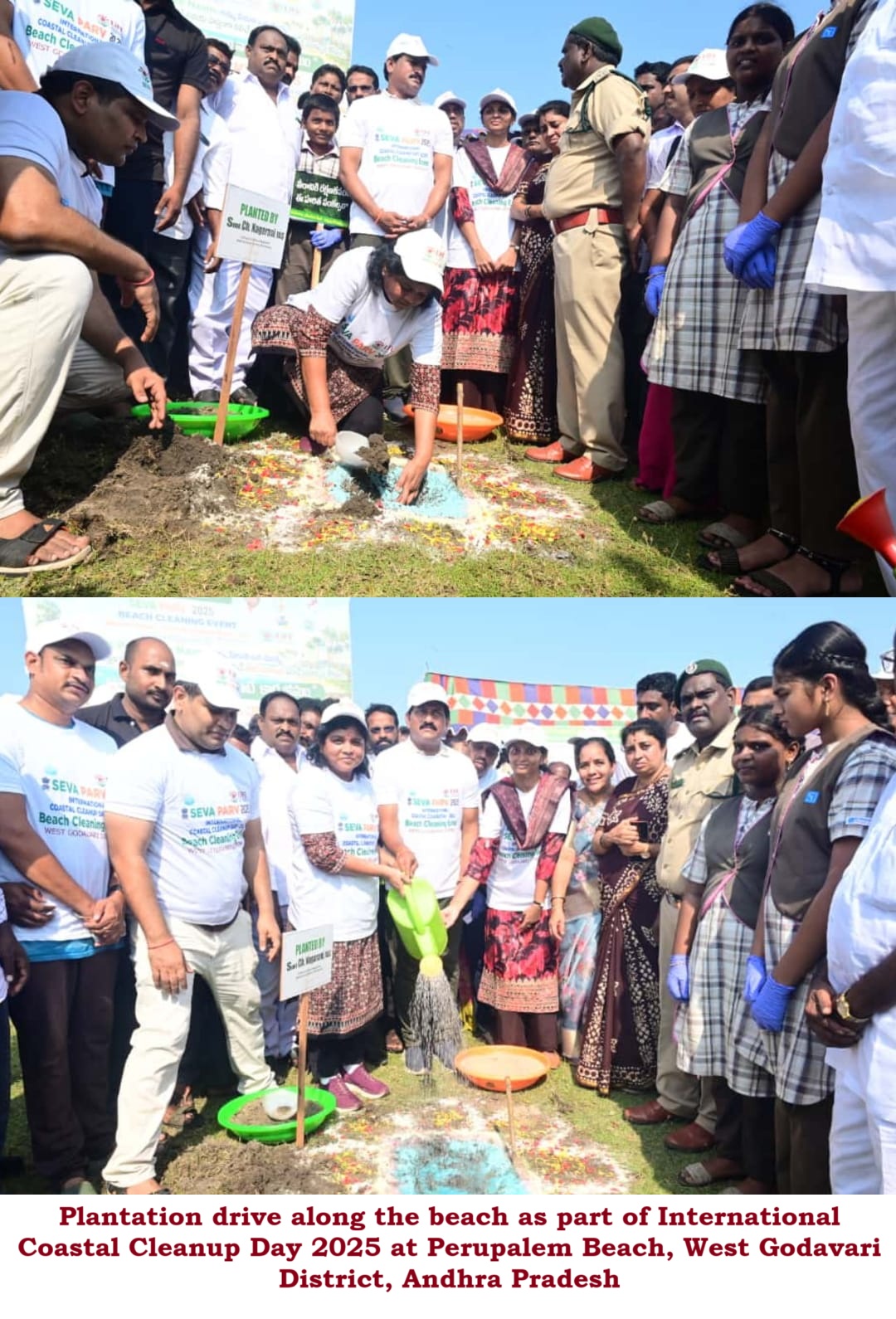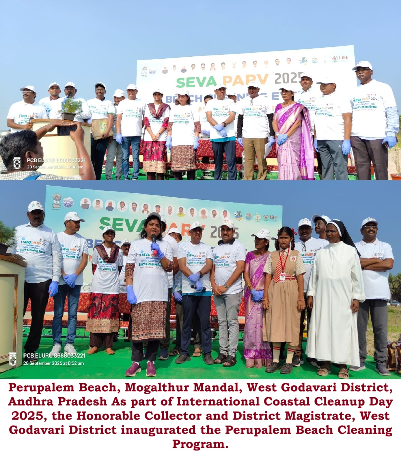 The Union Ministry of Environment, Forest and Climate Change (MoEFCC), in collaboration with the Government of Andhra Pradesh, organized a large-scale Beach Cleaning Drive at Perupalem Beach, West Godavari Beach on 20th September 2025. The initiative was part of the “Seva Parv” campaign, commemorating International Coastal Clean-up Day (ICCD) 2025.